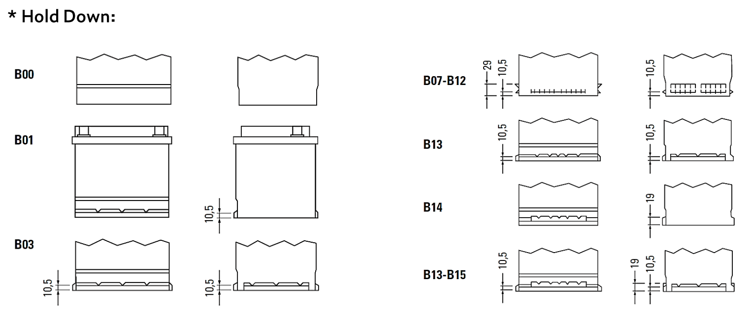 | Pn | Capacity (C20) | CCA (EN) | Voltage | HD | Polarity | Box | L | W | H | |